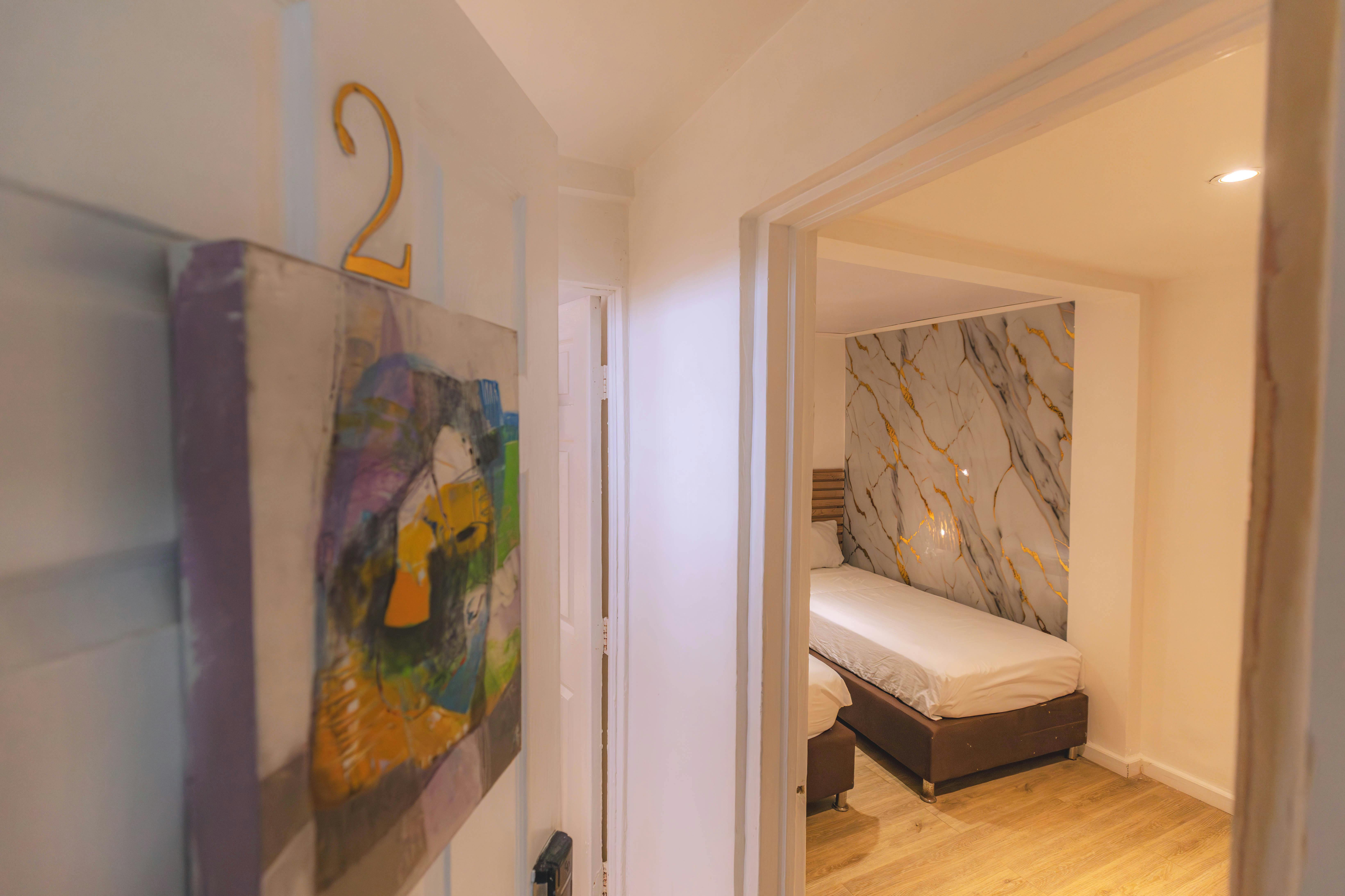 Disfruta de una estancia cómoda y exclusiva en nuestra habitación cuádruple, diseñada para ofrecer el máximo confort y relajación a grupos o familias que visitan el paraíso de San Andrés. Con capacidad para hasta cuatro personas, esta habitación moderna y luminosa cuenta con una decoración elegante que fusiona lo contemporáneo con toques locales, creando un ambiente acogedor y tranquilo.