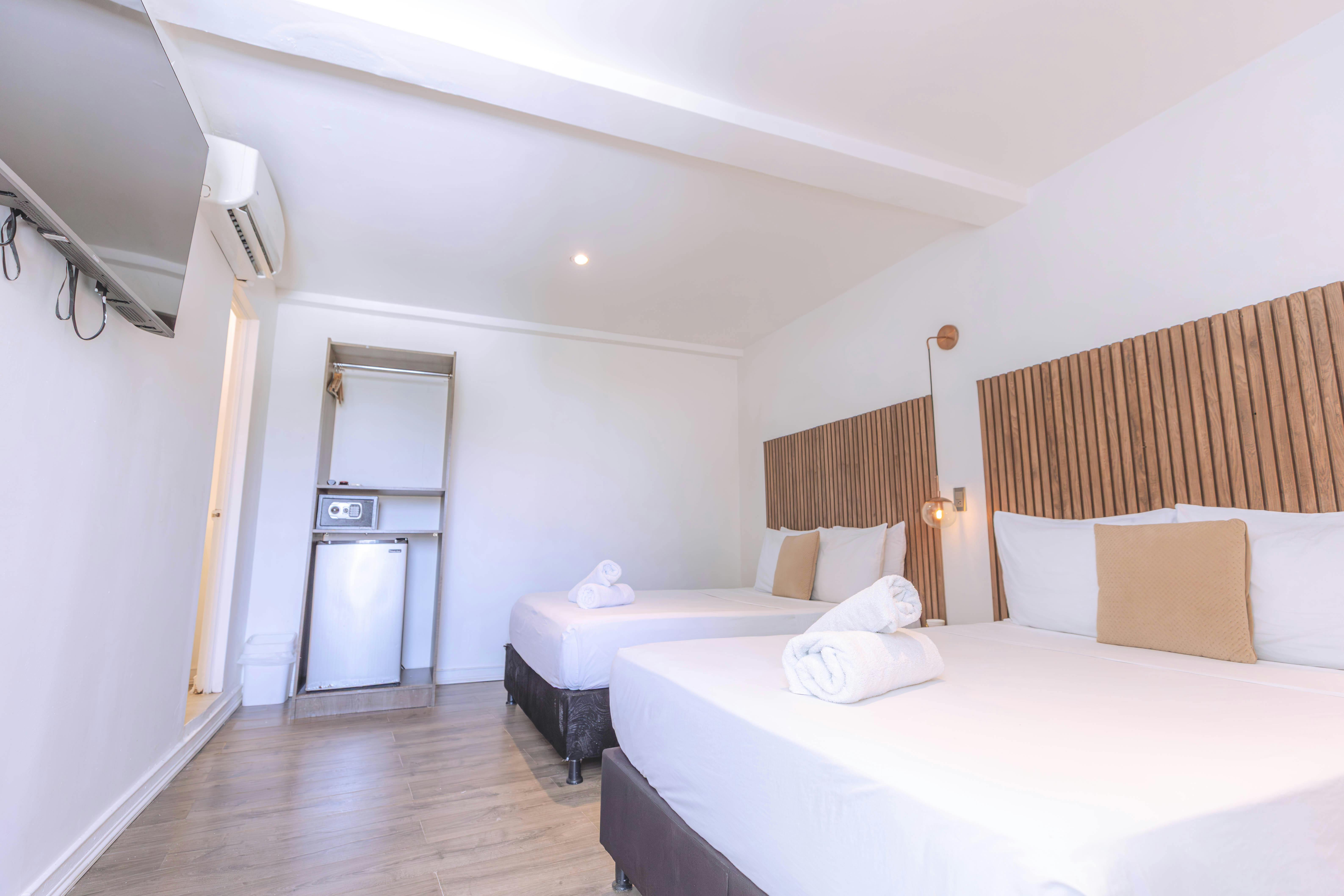 Equipada con 2 camas Matrimoniales aire acondicionado, baño privado con amenities de calidad, la habitación cuádruple del Ataraxy Hotel Boutique es el espacio ideal para compartir momentos especiales en la isla. Además, nuestros huéspedes pueden disfrutar de servicios exclusivos como Wi-Fi gratuito, televisión por cable, y atención personalizada, garantizando una experiencia única e inolvidable.